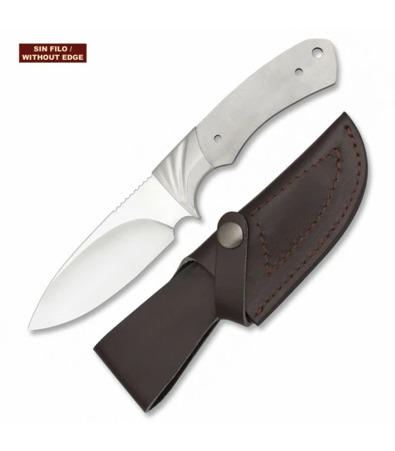Hunting knife with blade made in stainless steel without edge. Includes leather case.