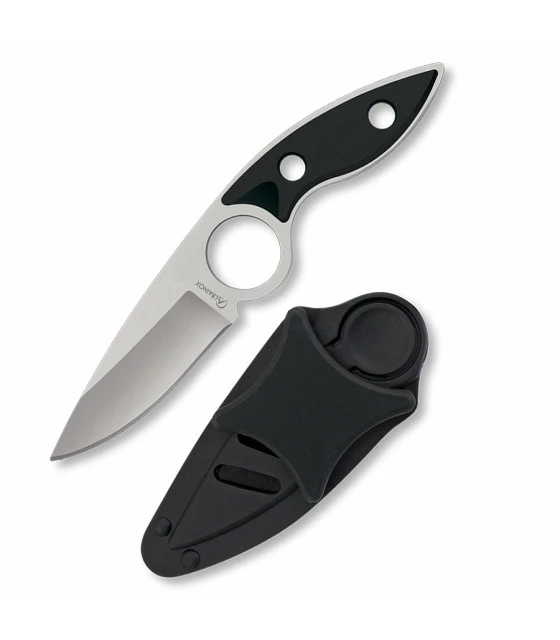 Albainox knife with a hole in the handle to insert the index finger and obtain a great grip safely. Satin steel blade and ABS handle.
