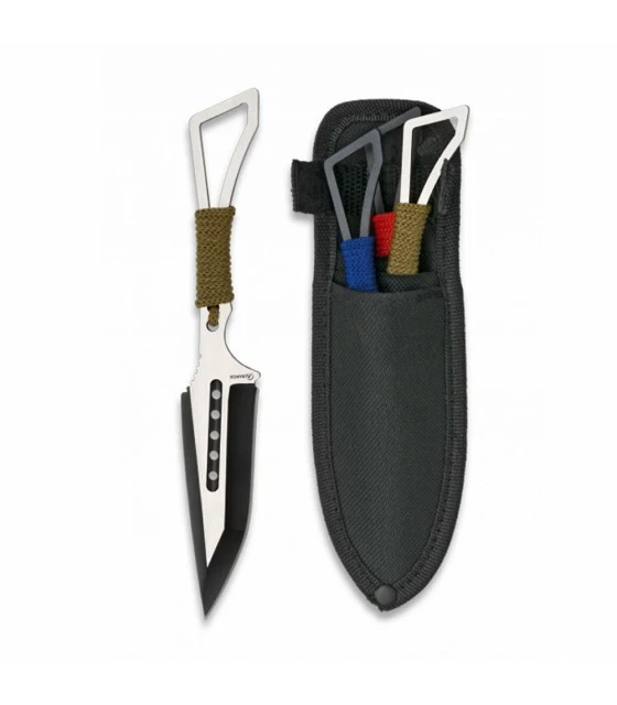 Three knives throwers of the brand Albainox. The pitchers are made of stainless steel and have the handle string. Include nylon sheath.