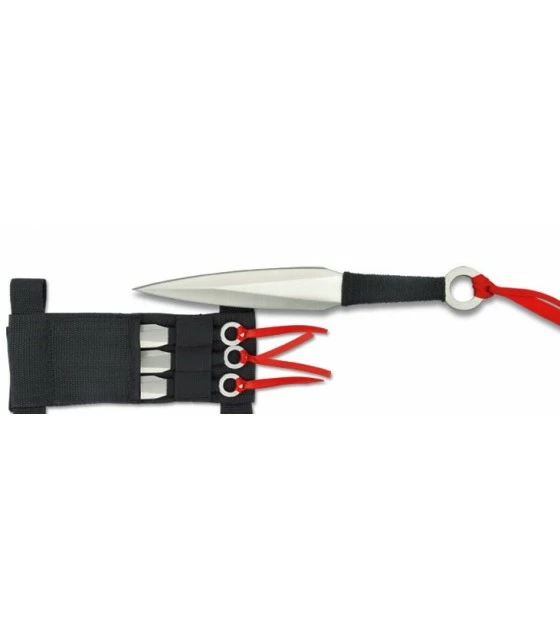 Set of 3 Kunai throwing knives, made entirely of stainless steel. The total length of the knife is 16 cms. Cover include nylons. Martinez made by the house Albainox with quality materials.