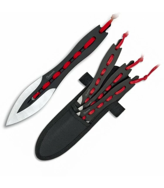 Set composed of 3 Albainox throwing knives with stainless steel blade and a single edge. It includes nylon sheath.