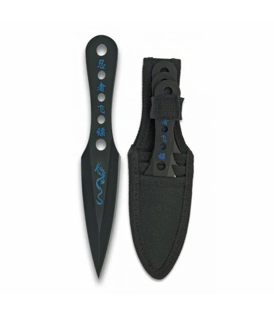 Set of 3 pitchers of a single edge, pattern, Blue Dragon. These throwers measure up to 16.5 cm long and are made of stainless steel. Include nylon sheath.