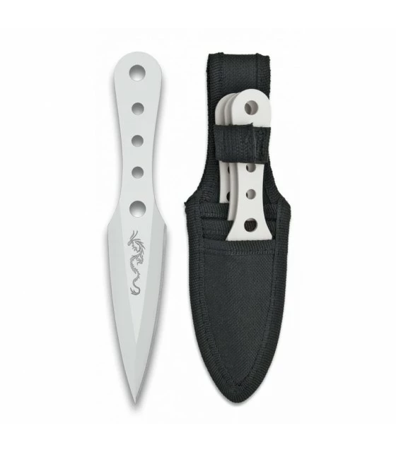 Set of 3 pitchers of a single edge, model White Dragon. These throwers measure is 16.2 cm long and are made of stainless steel. Include nylon sheath.