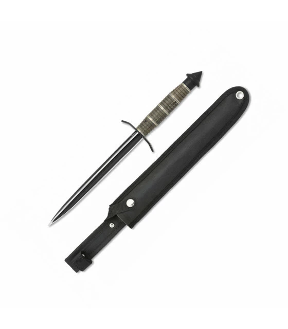 Albainox Triplex tactical knife with 20.5 cm blade. The blade is forged from 3Cr13Mov steel with a black finish. Includes black nylon sheath.
