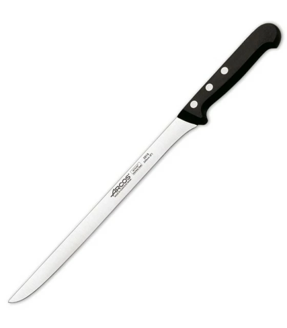 Flexible Universal ham carving knife Arcos series (Albacete-Spain) with flexible stainless steel sheet with durability NITRUM® 240 mm and handle polyoxymethylene (POM). Presentation case.