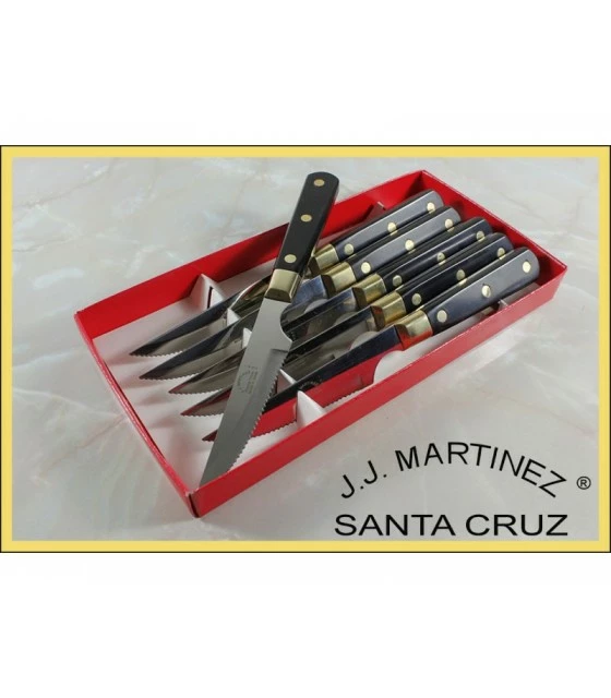 Knife professional chuletero handmade stainless steel sheet, bolster in brass and handle Phenolkraff black.