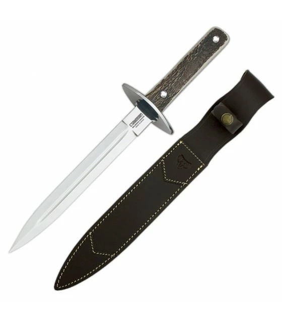 Dagger of venery manufactured in Albacete (Spain) by the signature Cudeman. Handle in deer antler. Includes holster. Features: