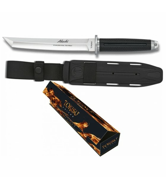 Japanese knife Tokisu Akechi with a sheet of 19.4 cms. made in stainless steel. 7Cr17MoV (CNC). The handle of this knife is made of rubber thus offering a better grip. Includes a nylon sheath.