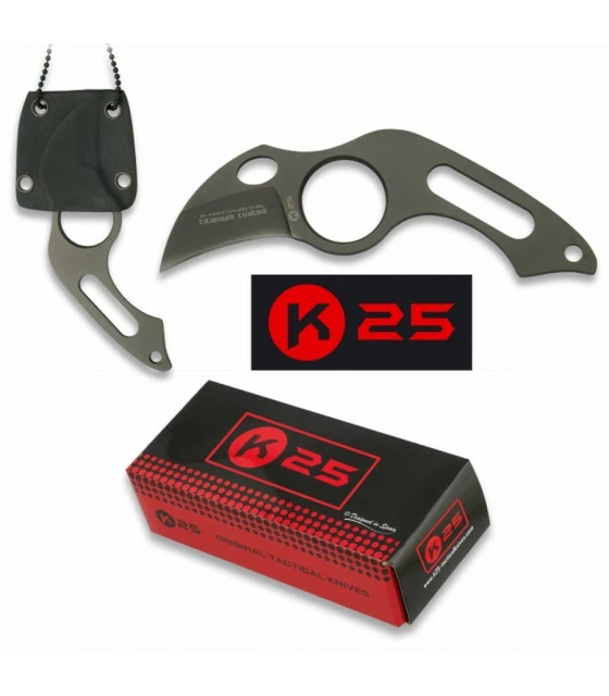 Tactical knife with stainless steel blade 3.9 cms. The total is 12.5 cms knife. Includes accessory to hang the knife Kydex made.