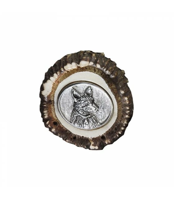 Knife auction of the brand Crush model Podenco. The blade is from MoVa and the handle on deer antler. The guard and the medal of the pommel are sterling silver. Includes a leather holster.