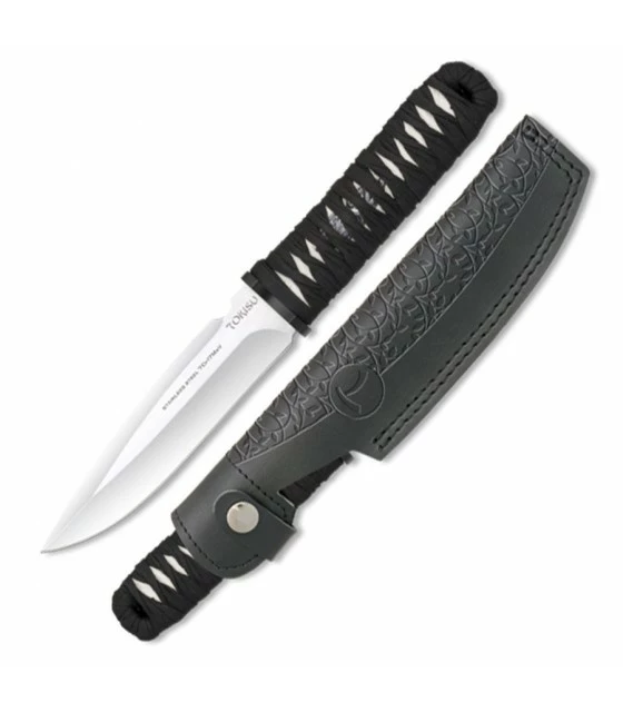 Knife brand Tokisu stainless steel sheet 7Cr17MoV (CNC) and handle the rope. Includes leather case. Model registered and designed in Spain.