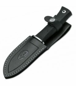 Hunting knife manufactured by the prestigious Spanish house Muela, the blade is 440 steel with a length of 8 cm. The handle is stag and measures 10 cms. It includes brown leather sheath.