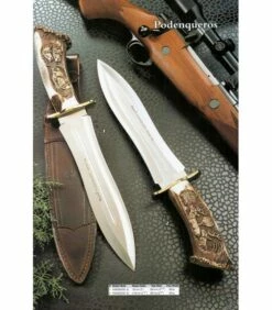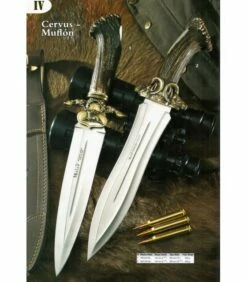 Hunting knife Muela model Nicker with blade made of stainless steel and X50CrMoV15 stag handle. The ferrule is alpaca. It includes leather case and certified quality.