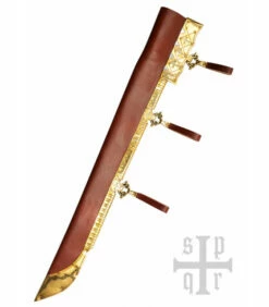 Knife viking Seax with sharp blade forged by hand in steel of damascus of 256 layers. The grip draws attention by its composition of wood and bone. Includes a sheath of leather with decorations of brass.