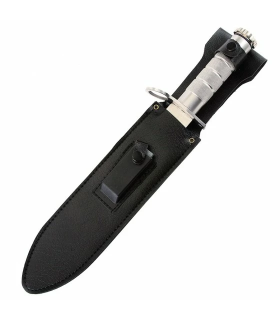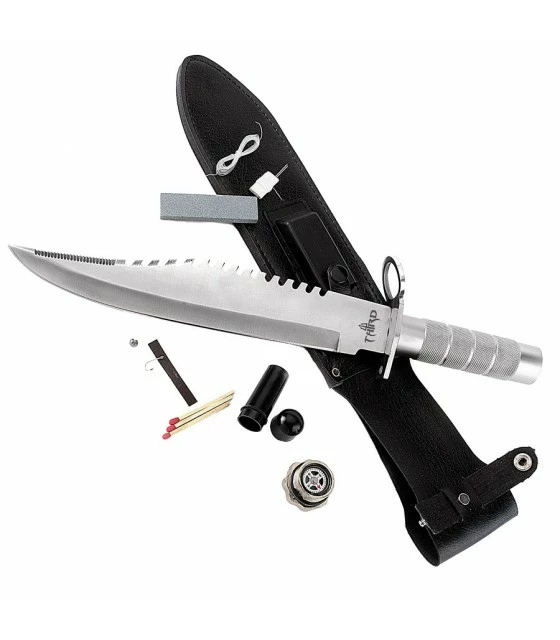 tactical survival knife Third mark with accessories like compass, magnesium rod, etc. It includes leather case with belt clip.