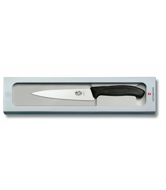 SwissClassic carving knife with a blade of 15 cms. and handle fibrox. black. It includes gift box.