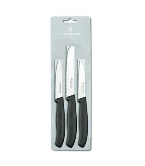 Game 3 kitchen knives for vegetables. A choice with black or red handle.
