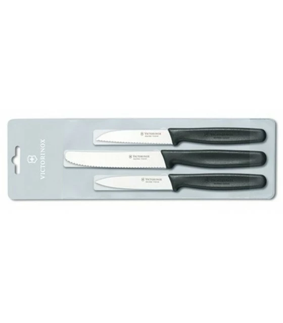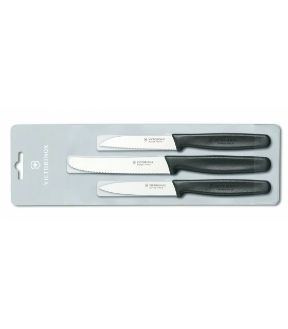 Game 3 kitchen knives for vegetables with black polypropylene handle.